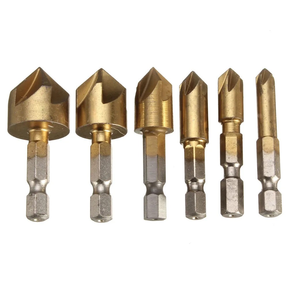 Buy 6PCS 5 Flute Chamfer Countersink 1/4" Hex Shank HSS 90 Degree Wood Chamfering Cutter Chamfer 6mm-19mm Countersink Drill Bit Right Here and Right Now or before 2019-03-31 and You will save US $7 or , Because before price is changed afer 2019-03-31 you will just pay for , not in Reguler Price at 6.40. Yap! This is I mean you will Save / US $7