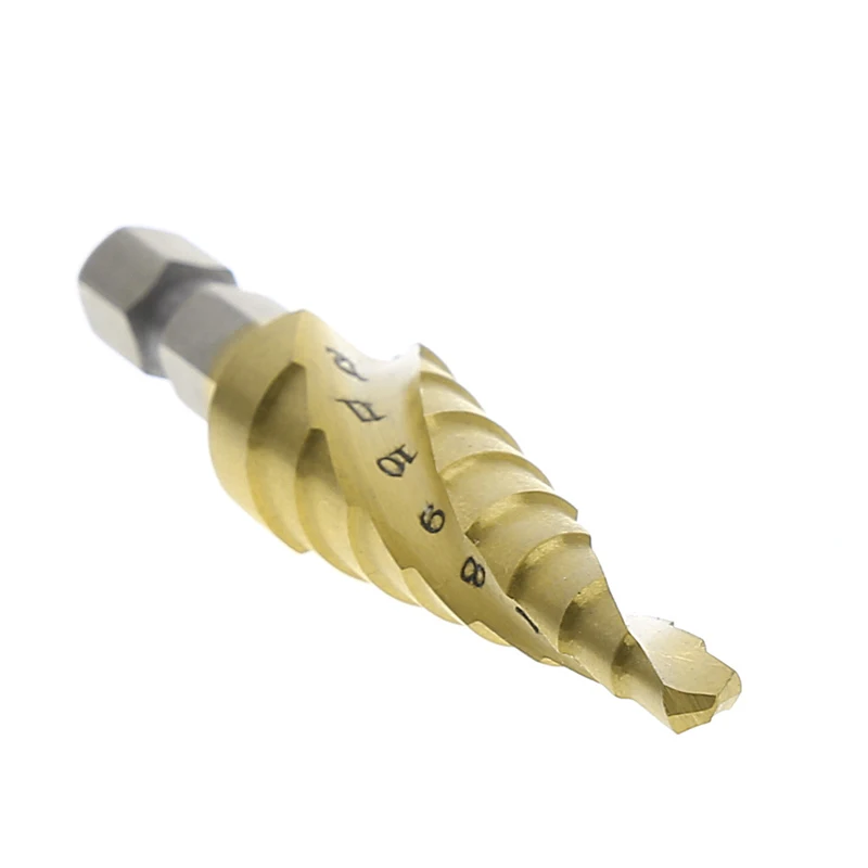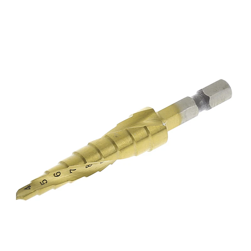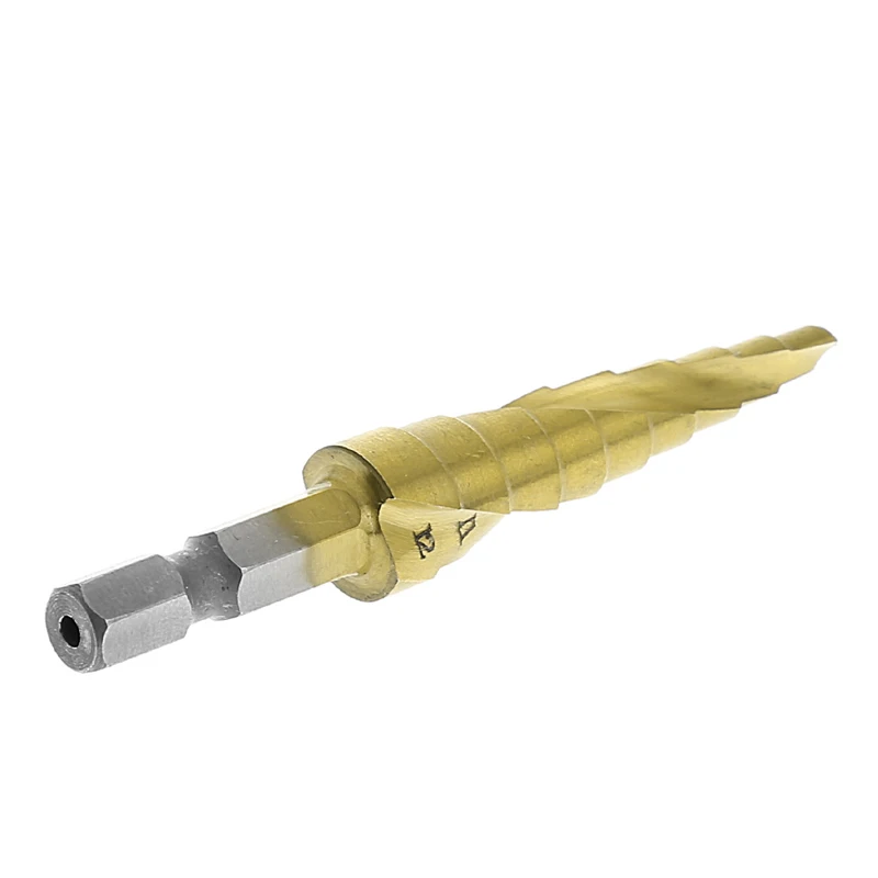 .Pictures for HSS Spiral Grooved Step Cone Drill Bit 1/4" Hex Shank Metal 4mm-12mm Hole Cut New